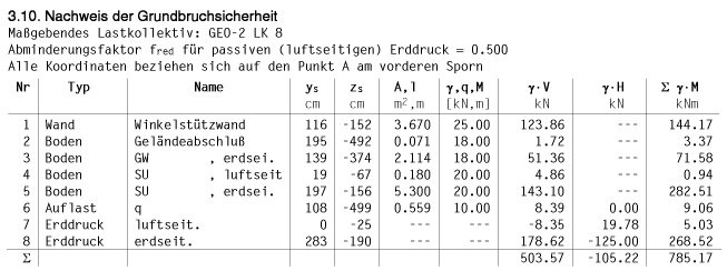 | die Berechnung der äußeren Standsicherheitsnachweise