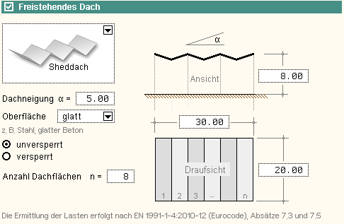 festgelegt werden. Ist hierin DIN 1055 ausgewählt,