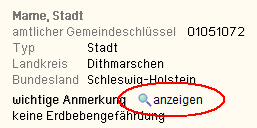 | Weitere Möglichkeiten sind Höhe über NN, Windzonen, Schneelastzonen und Erdbebenzonen. |