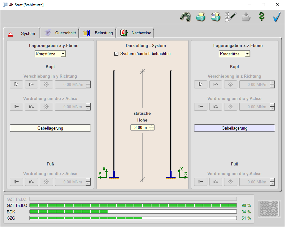 -STAST, Stahleinzelstütze, Eingabeoberfläche