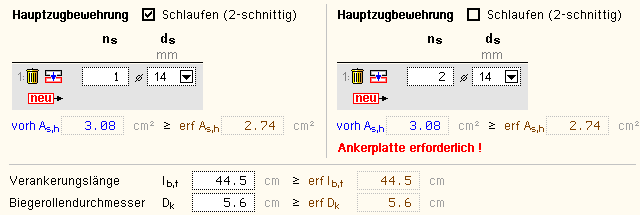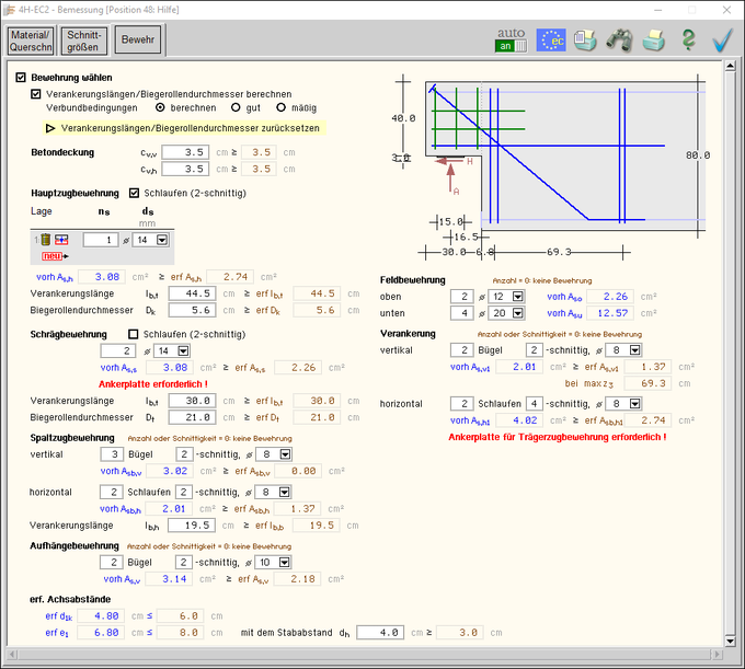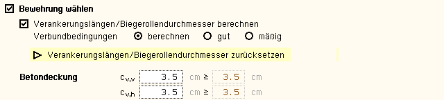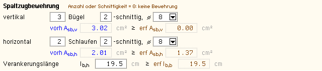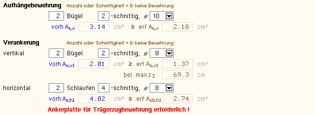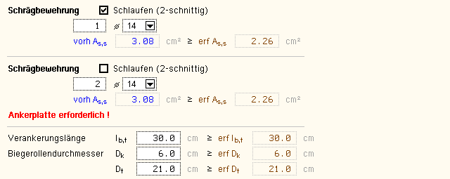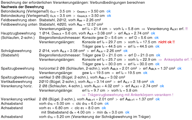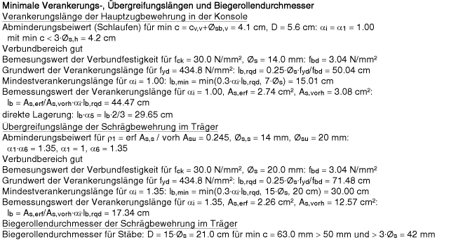 | Im Anschluss an die Ergebnisse sind die zur Bemessung