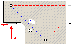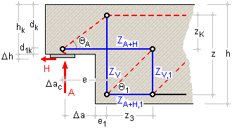 Vertikallast A und Δh für die Horizontallast H sind anzugeben. |