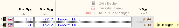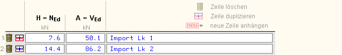 Eine Aktualisierung der importierten Schnittgrößenkombinationen, z.B. aufgrund einer Neuberechnung