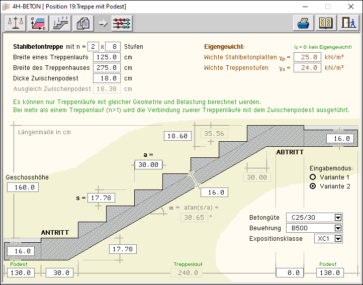 -TrePo, Treppe mit Podest, Eingabeoberfläche