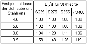 Materialsicherheitsbeiwerte entweder auf EC3-1-8, 4.3.2, Tab.4.1,