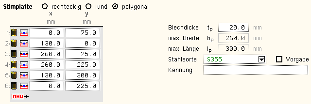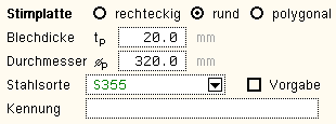 im Stahlquerschnitt benötigten Parameter werden