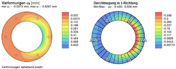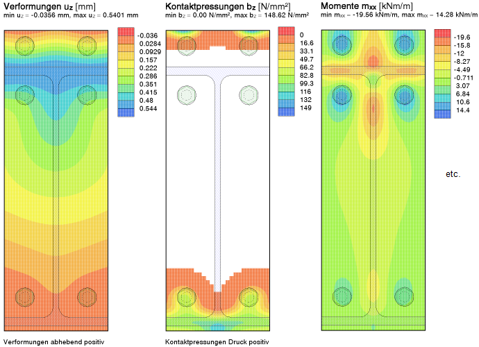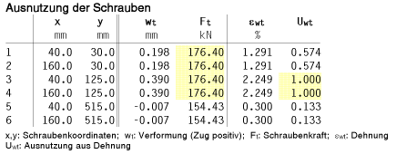 die Schraubenkräfte und Plattenspannungen gut genug,
