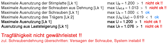 | MRd = 64.4 kNm → Mu = 80.5 kNm (Versagen: Stirnblech