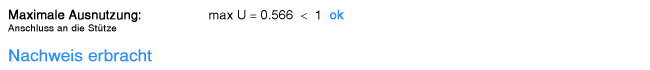 | Die maximale Ausnutzung dieses Nachweises ergibt |