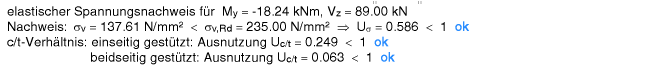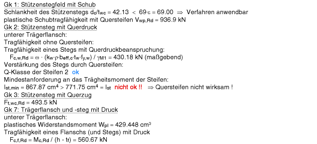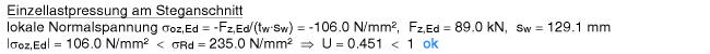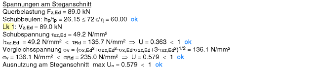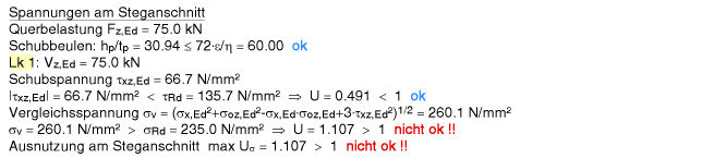 | Der Vergleichsspannungsnachweis enthält hier nur Anteile aus Querlast- und Schubspannung im Steg. |