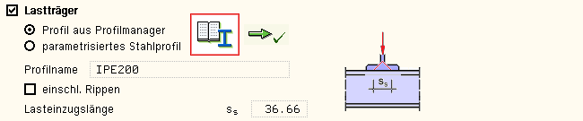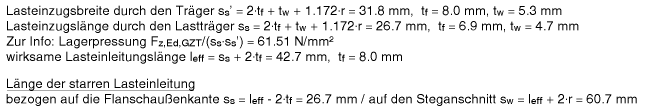 | Am Ort der Lasteinleitung wirkt bzgl. einer Lasteinzugslänge sw die lokale Einzellast, die am Steganschnitt
