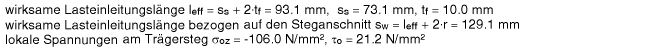 | Die Belastung fließt aus dem Steg des Lastträgers in den Steg der Konsole, so dass sich die starre Lasteinzugslänge bezogen auf den Steganschnitt ergibt von |