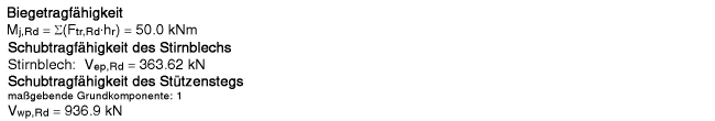 3-1-8, 6.2.7.2 die Tragfähigkeiten je Schraubenreihe, mit denen die Biegetragfähigkeit ermittelt wird, sowie die Schubtragfähigkeiten von Stirnblech und Stützensteg, |