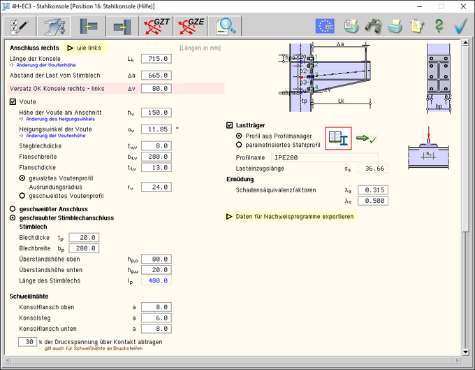 Konsolen mit Doppel-T-Querschnitten nach Eurocode 3 nachgewiesen werden. |