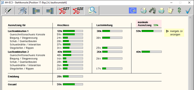 und Ermüdung) lastfallweise und detailliert