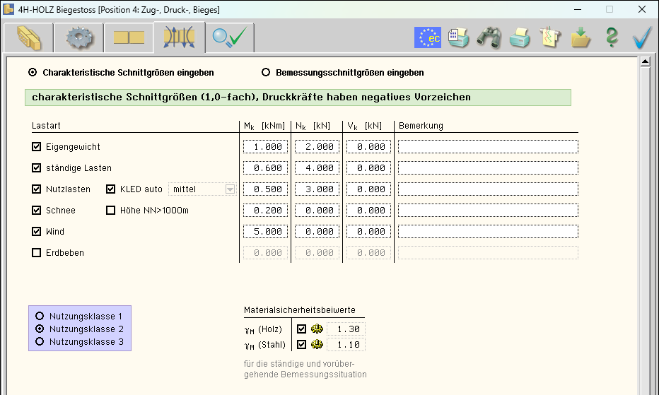 -HBST, Trägerstöße, Schnittgrößen