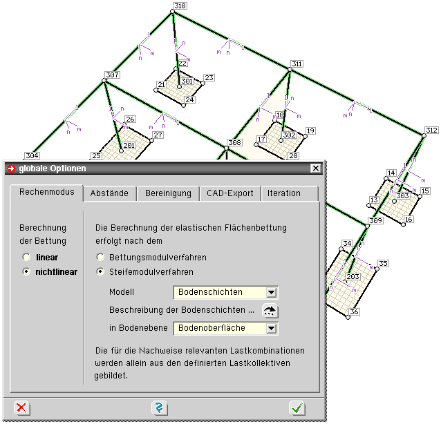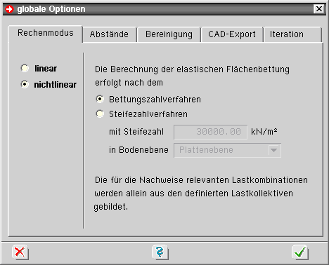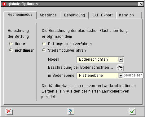 | Der Rechenmodus unterscheidet auf oberster Ebene zunächst zwischen der Art der Bettungsberechnung. |