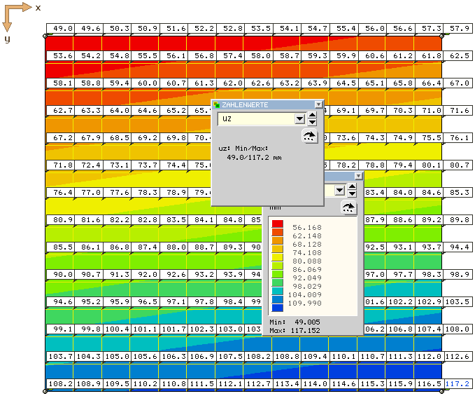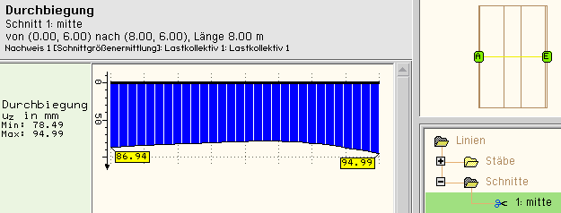 | Die von 4H-ALFA errechneten Durchbiegungen im mittleren Schnitt (in mm)