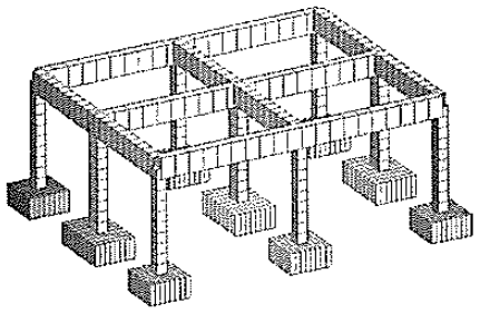 | Eine Gruppe von neun Einzelfundamenten wird über einen Überbau belastet.