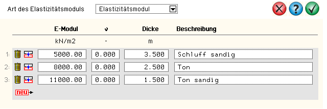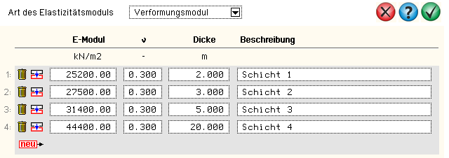 Register Rechenmodus, Button Beschreibung der Bodenschichten... eingegeben.