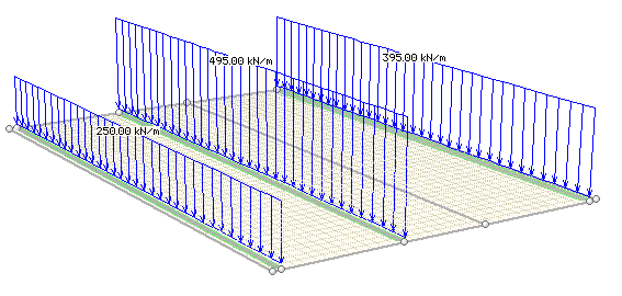 | Eine starre Platte mit exzentrischer Einzellast (142.000 kN) wurde mit dem Programm