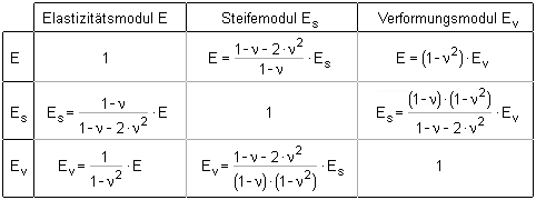Bodenkennwerten als Elastizitätsmodul E, Steifemodul Es oder Verformungsmodul