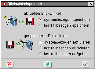 | Im Blickwinkelspeicher kann die aktuelle Kameraposition system- oder lastfallbezogen gespeichert werden. |