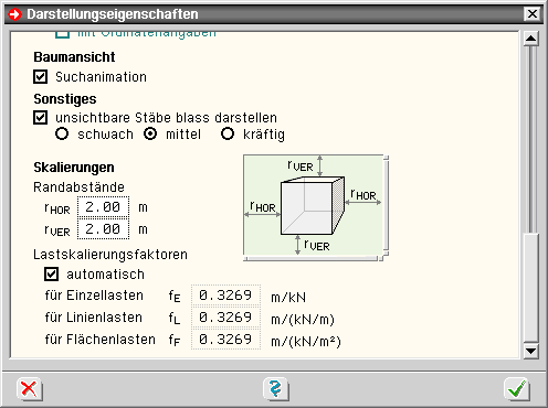 | Für die Einzel-, Linien- und Flächenlasten können Faktoren zur Größenskalierung angegeben