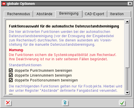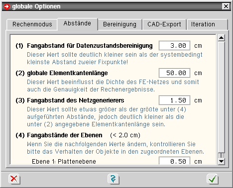 | Durch Klicken der nebenstehend dargestellten Buttons können die Angaben zum Rechenmodus eingesehen bzw. geändert werden. Das Eigenschaftsblatt ist in mehrere Register eingeteilt. |  |  |