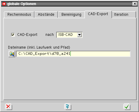 | Hierzu existieren Datenformate unterschiedlicher CAD-Hersteller. Für den CAD-Export ist die Eingabe des Namens einer externen Datei erforderlich. |