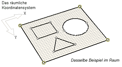 | Darüber hinaus kann die Darstellung des räumlichen Koordinatensystems im Raum an- bzw. abgeschaltet werden.