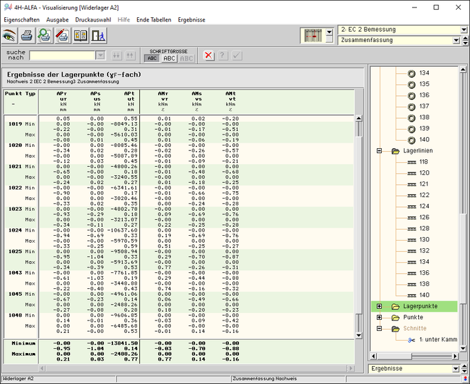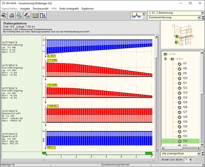 und Bemessungsergebnisse auf Linien oder Einzelstäben/Stabgruppen. |