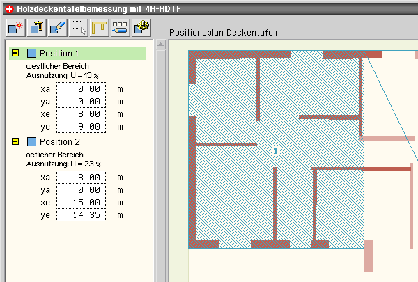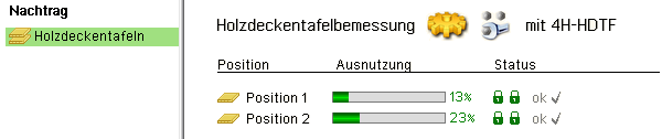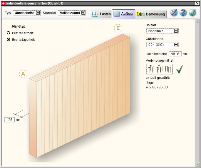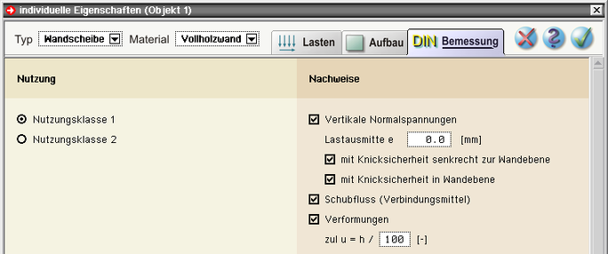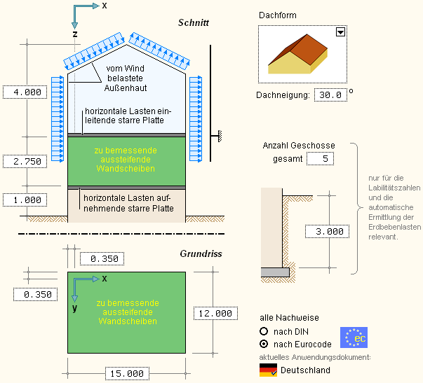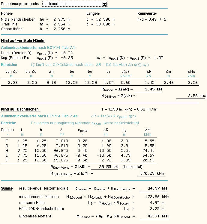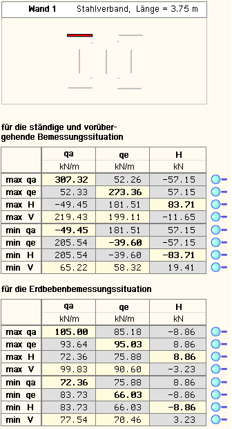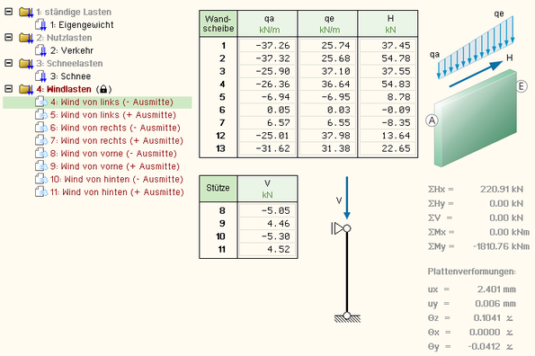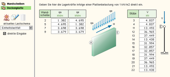 | Ein automatisch initiierter Sprung ins 2. Register zeigt das Ergebnis auf den Seiten Wandscheiben und Deckenplatte an. |