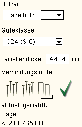 Um bei dem Beispiel aus Projekt 2 (Tutorium) zu bleiben, wählen Sie Stahlbeton mit einer Dicke