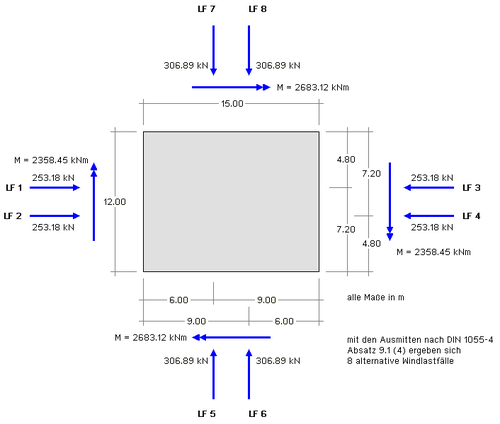| Bei den Lastschemata geht 4H-HORA normalerweise davon aus, dass sich die dort eingetragenen Wand- und Stützenlasten aus einer Einheitslast von 1 kN/m² ergeben. |