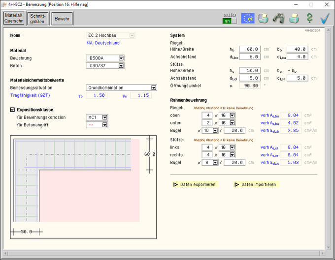 für die Grundkombination, Erdbeben-Kombination oder außergewöhnliche Kombination nach EC 0 vom Programm vorbelegt werden (s. NA). |