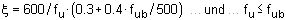 Festigkeiten fy und fu, die je nach Dicke des