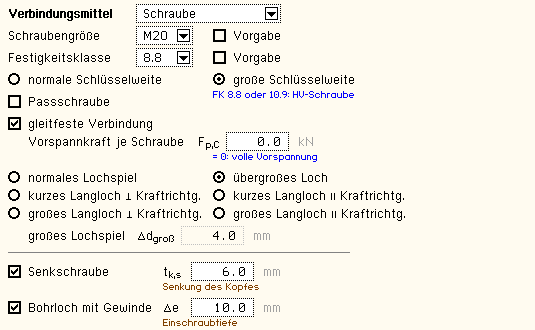 | Ankerschrauben sind bei Wahl des EC 3-1-8:2010 nicht verfügbar. |
