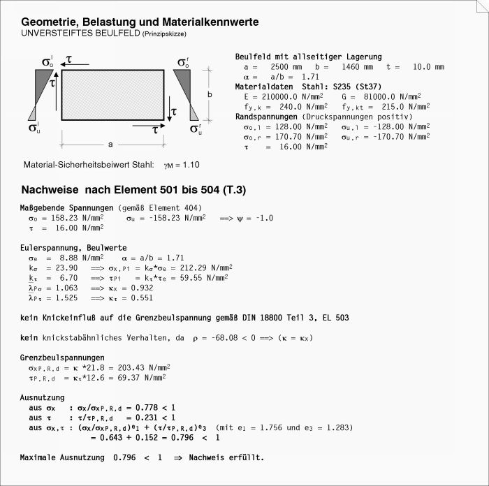 unversteifte Beulfelder unter Wirkung von Normal- und