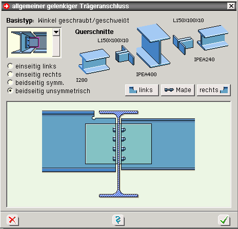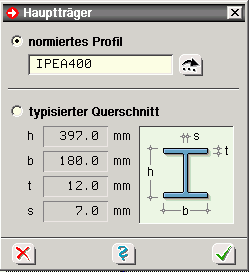 und die Querträger wird zwischen Eingabe von Walz- und Schweißprofilen
