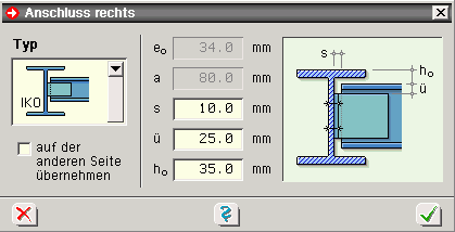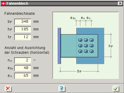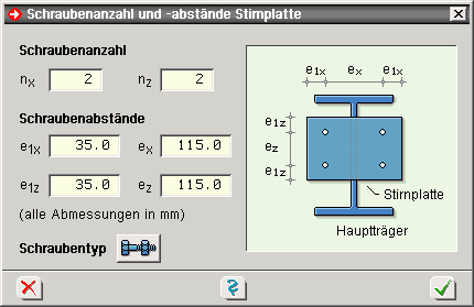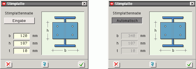 Zur Eingabe der Stirnplattennabmessungen bestehen