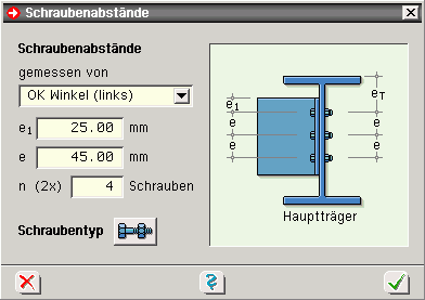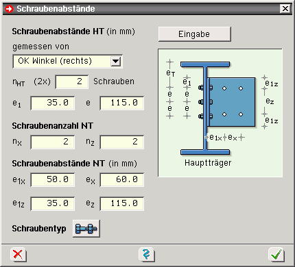 In diesem Eingabeblatt können die vertikalen Schraubenabstände