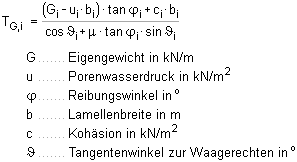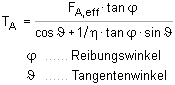haltende Tangentialkraft in der Gleitfläche, berechnet aus den maßgebenden Reibungs- und