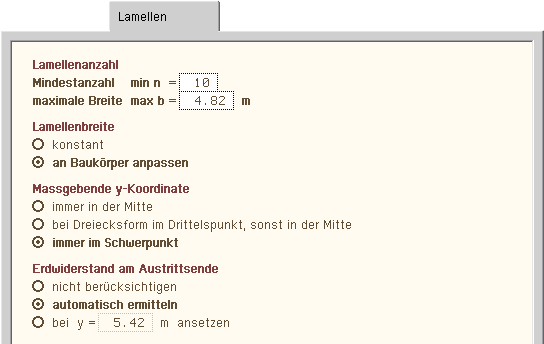 zu allgemeinen Berechnungseinstellungen, Lamellen,