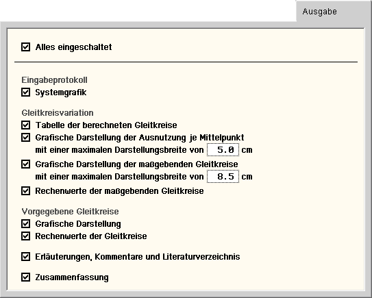 Darstellung der Bemessungsergebnisse am Bildschirm |
