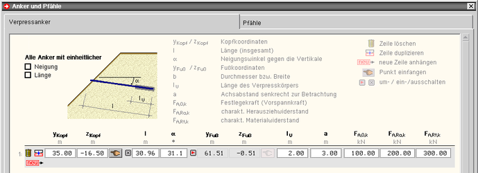 gleitfugenparallele Anteil der Ankerkraft ermittelt sich ebenso wie beim selbstspannenden Zugglied. |