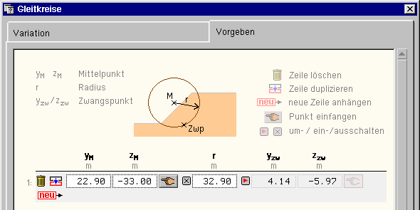 Für jeden Gleitkreis wird der erste Iterationsschritt
