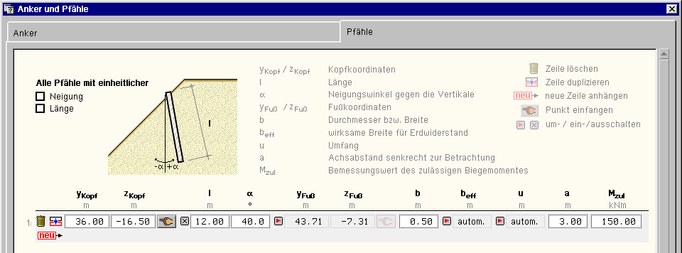 Die Berechnung des resultierenden Widerstandsmoments erweitert sich bei Pfählen, die im