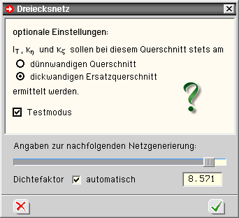 Der Benutzer wird gefragt, ob ein dünn- oder ein dickwandiger Querschnitt
