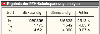Im Ergebnisfenster erscheint ein neuer Absatz, der die nach FEM berechneten Schubkennwerte zusätzlich zu den dünnwandig